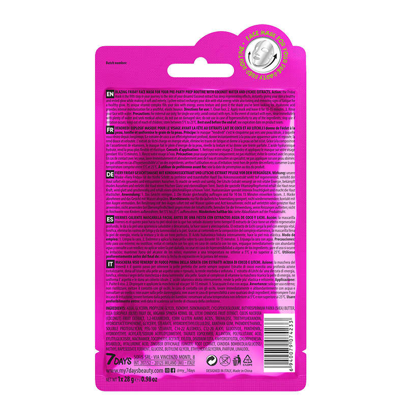 7DAYS Face mask BLAZING FRIDAY For your pre-party perp routine with coconut water and Lychee, 28 g