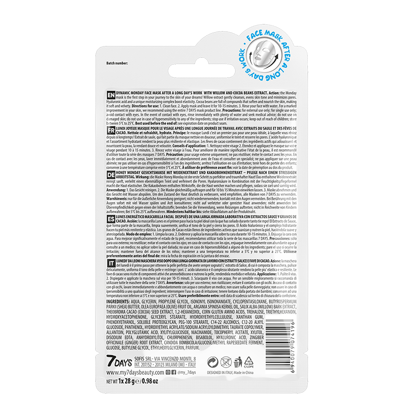 7DAYS Face mask DYNAMIC MONDAY After a long day’s work with Willow and Cocoa Beans, 28 g