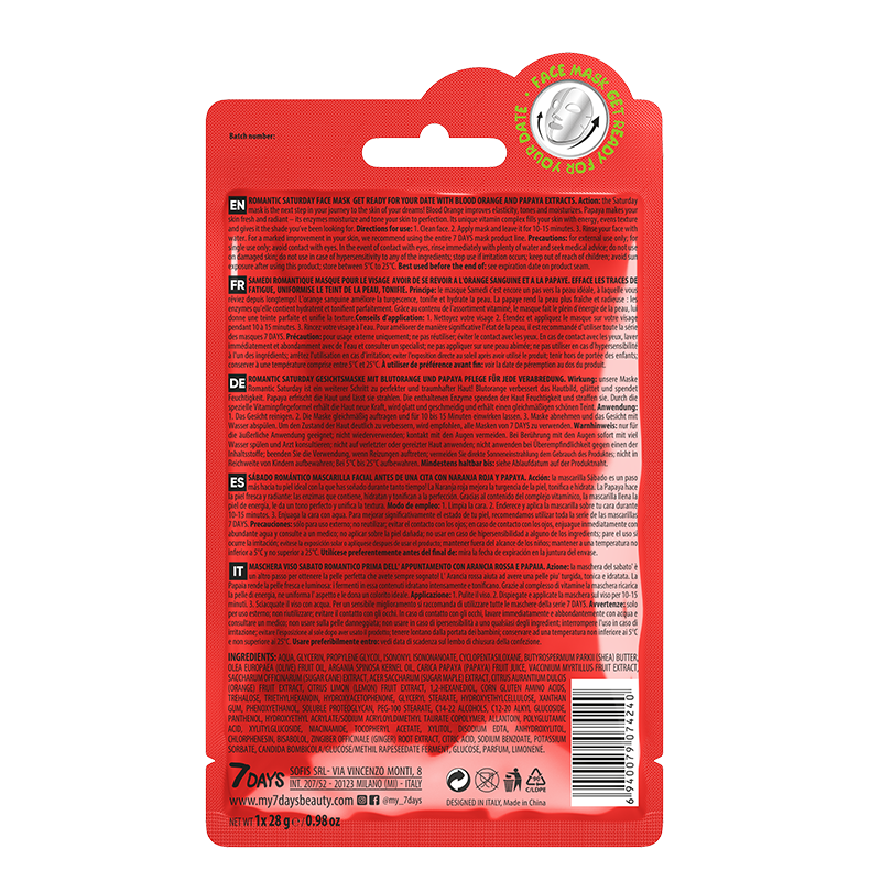 7DAYS Face mask ROMANTIC SATURDAY Get ready for your date with Blood Orange and Papaya, 28 g