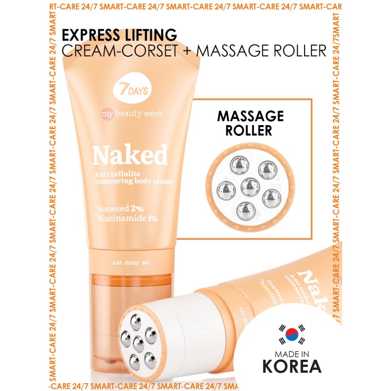 Κρέμα περιγράμματος-κορσέ + ενυδατική κρέμα + ρολό μασάζ 3in1 με ενεργά συστατικά: φύκια, νιασιναμίδη. Αποτελεσματική καταπολέμηση των ορατών σημαδιών κυτταρίτιδας και σμίλευση σώματος. Τα φύκια ενυδατώνουν, βοηθούν στην αύξηση της παραγωγής κολλαγόνου, κάνουν το δέρμα σας εύπλαστο και ελαστικό. Η νιασιναμίδη καταπολεμά τις ατέλειες και ενισχύει το δέρμα σας. Το contouring cream-corset λειτουργεί ως προϊόν express lifting και βοηθά στην αφαίρεση των αποθηκών λίπους. Ο κύλινδρος “SKIN WORKOUT” λειτουργεί άνετα και ανώδυνα στις προβληματικές περιοχές, ενισχύει την αντικυτταριτιδική δράση και εξασφαλίζει βαθιά διείσδυση των ενεργών συστατικών. ΟΔΗΓΙΕΣ: Γυρίστε το κάτω μέρος του ακροφυσίου δεξιόστροφα για να ανοίξετε τη συσκευασία. Σημείωση: η ποσότητα του παρεχόμενου προϊόντος μπορεί να προσαρμοστεί, εντοπίστε το απαλά στις προβληματικές περιοχές. Κλείστε τη συσκευασία περιστρέφοντας το κάτω μέρος του ακροφυσίου αριστερόστροφα μέχρι να κάνει κλικ. Απλώστε στο σώμα με κυκλικές κινήσεις από πάνω προς τα κάτω για 10-15 λεπτά χρησιμοποιώντας το ρολό μασάζ. Χρησιμοποιήστε ως κρέμα μετά το ντους ή ως κρέμα κορσέ το βράδυ, δεν απαιτεί ξέβγαλμα.
