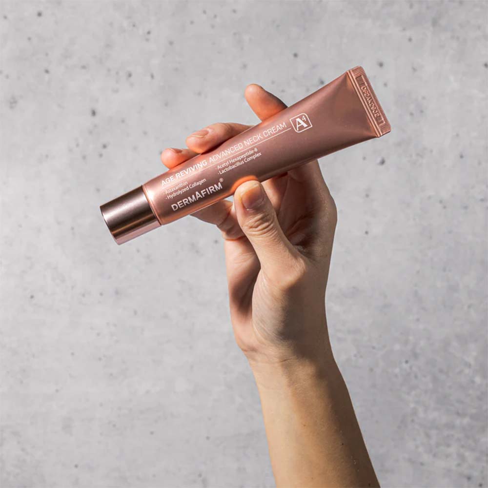 Το δέρμα του λαιμού είναι λεπτό και ευαίσθητο, γεγονός που το καθιστά πιο επιρρεπές στη γήρανση, ενώ συχνά παραμελείται στη φροντίδα της επιδερμίδας. Με την εμφάνιση του φαινομένου «tech neck», που προκαλείται από τη συχνή κλίση του κεφαλιού λόγω της χρήσης ηλεκτρονικών συσκευών, οι γραμμές και οι ρυτίδες στον λαιμό εμφανίζονται πλέον νωρίτερα, ακόμα και σε νεότερες ηλικίες. Η προηγμένη φόρμουλα της DERMAFIRM, εμπλουτισμένη με το πατενταρισμένο Astasome®️ και το Terrabiome, που παράγεται μέσω παραδοσιακών μεθόδων ζύμωσης, σε συνδυασμό με ισχυρά, προσεκτικά επιλεγμένα συστατικά, θα αναζωογονήσει την επιδερμίδα, προσφέροντας πιο λείο και νεανικό λαιμό.