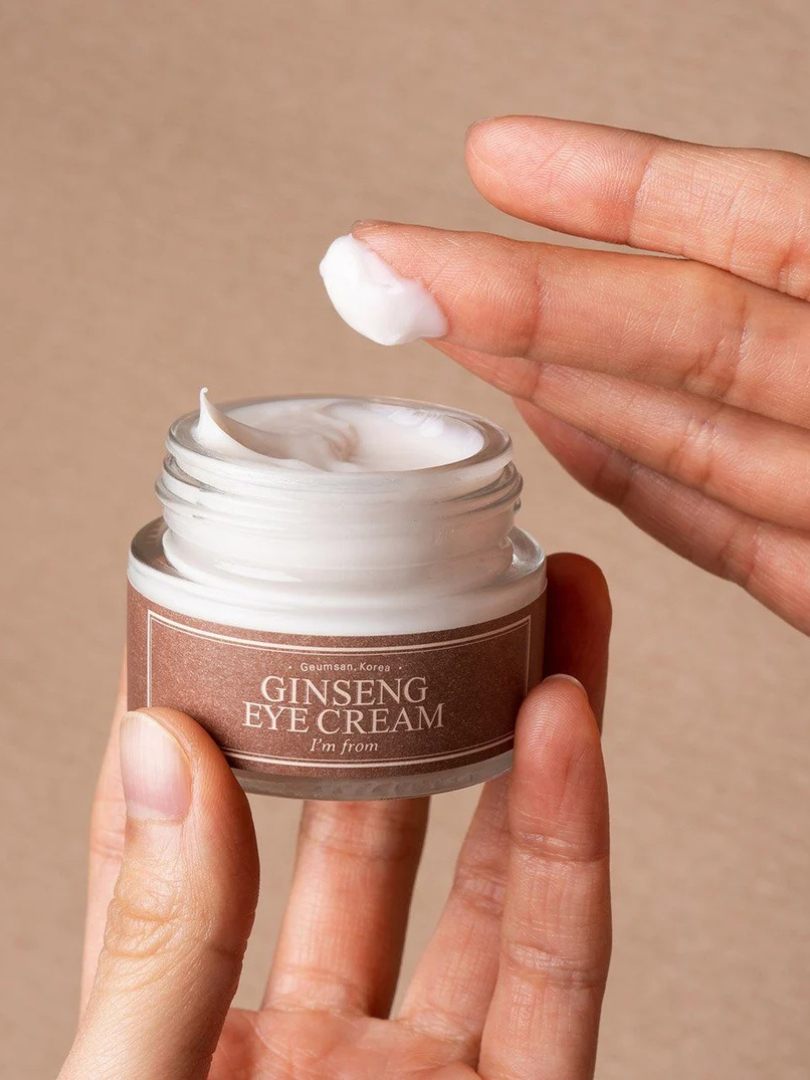 Κρέμα ματιών με τρεις τύπους σπάνιου ginseng για να προσφέρει θρέψη & λείανση στα κουρασμένα μάτια.Η I’m from Ginseng Eye cream είναι μια κρέμα ματιών που περιέχει τρεις τύπους σπάνιου ginseng για να προσφέρει θρέψη στα κουρασμένα μάτια και να αφήσει την επιδερμίδα λεία και σφριγηλή. Το τζίνσενγκ που καλλιεργείται σε ξύλο, το κύριο συστατιξά της κρέμας έχει υψηλή περιεκτικότητα σε ginsenoside και σταθερή υφή που αγκαλιάζει όμορφα τις καμπύλες του δέρματος για να γεμίσει τις αυλακώσεις με υγρασία. Το δέρμα μετά είναι γεμάτο, σφιγηλό και λείο.