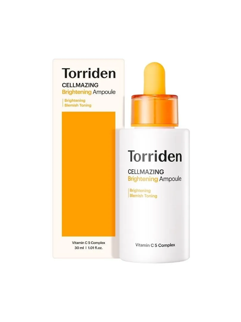 Αντιγηραντική, λευκαντική αμπούλα.Η Torriden Cellmazing Brightening ampoule, καταπολεμά την θαμπή όψη και τις πανάδες. Είναι ένας ορός λάμψης και ενυδάτωσης που χάρη στο σύμπλεγμα τύπων βιταμίνης C και της πανθενόλης, παρέχει λάμψη και ενυδάτωση. Παράλληλα λόγω του εκχυλίσματος φυκιών που περιέχει, παρέχει ήπια απολέπιση και αποκαλύπτει το πιο λαμπερό σας πρόσωπο.