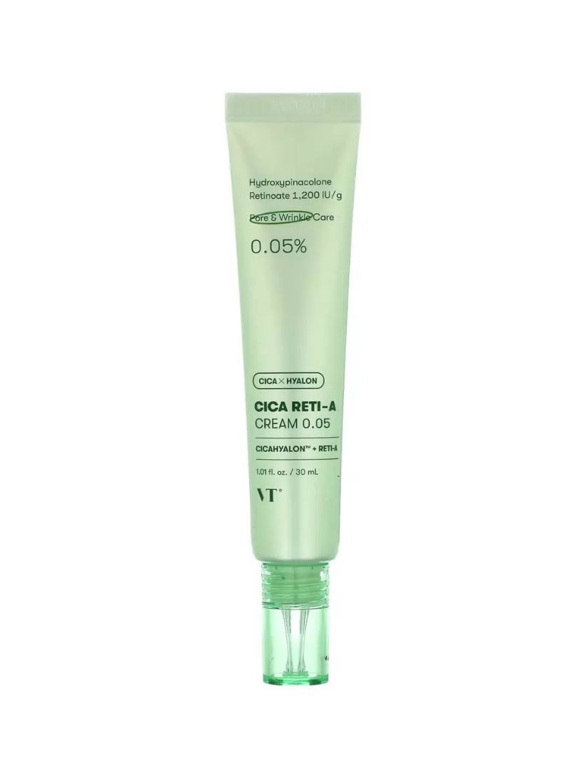 Κρέμα με ρετινόλη σε περιεκτικότητα 0,05%.Η VT Cica Reti-A Cream 0.05% είναι μια αντιγηραντική κρέμα νυκτός με ρετινόλη και centella asiatica. Η πατενταρισμένη φόρμουλα της VT είναι κατάλληλη ακόμα και για ευαίσθητες επιδερμίδες, καθώς εκτός από σύσφιξη ρυτίδων και πόρων, προσφέρει και καταπράυνση.